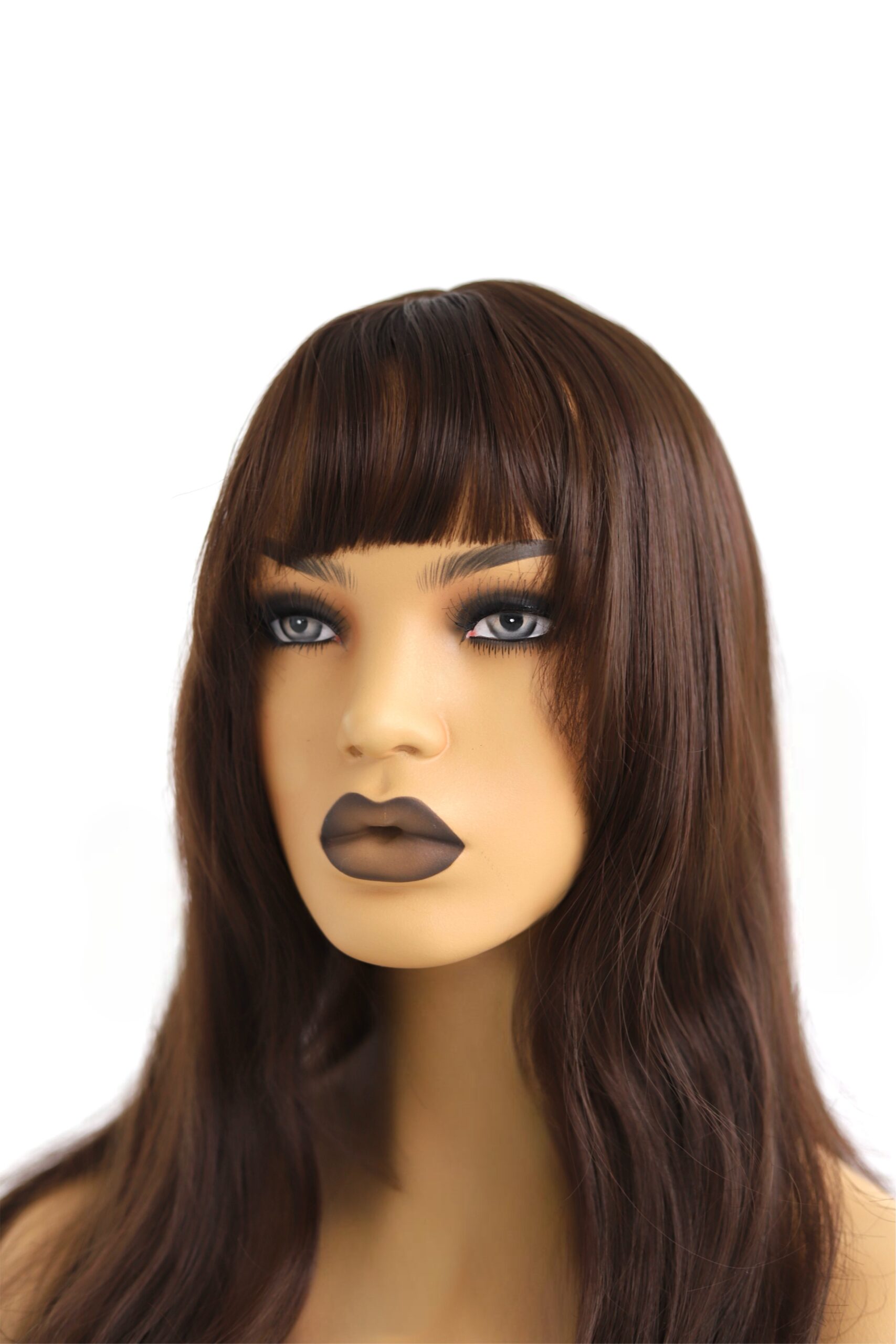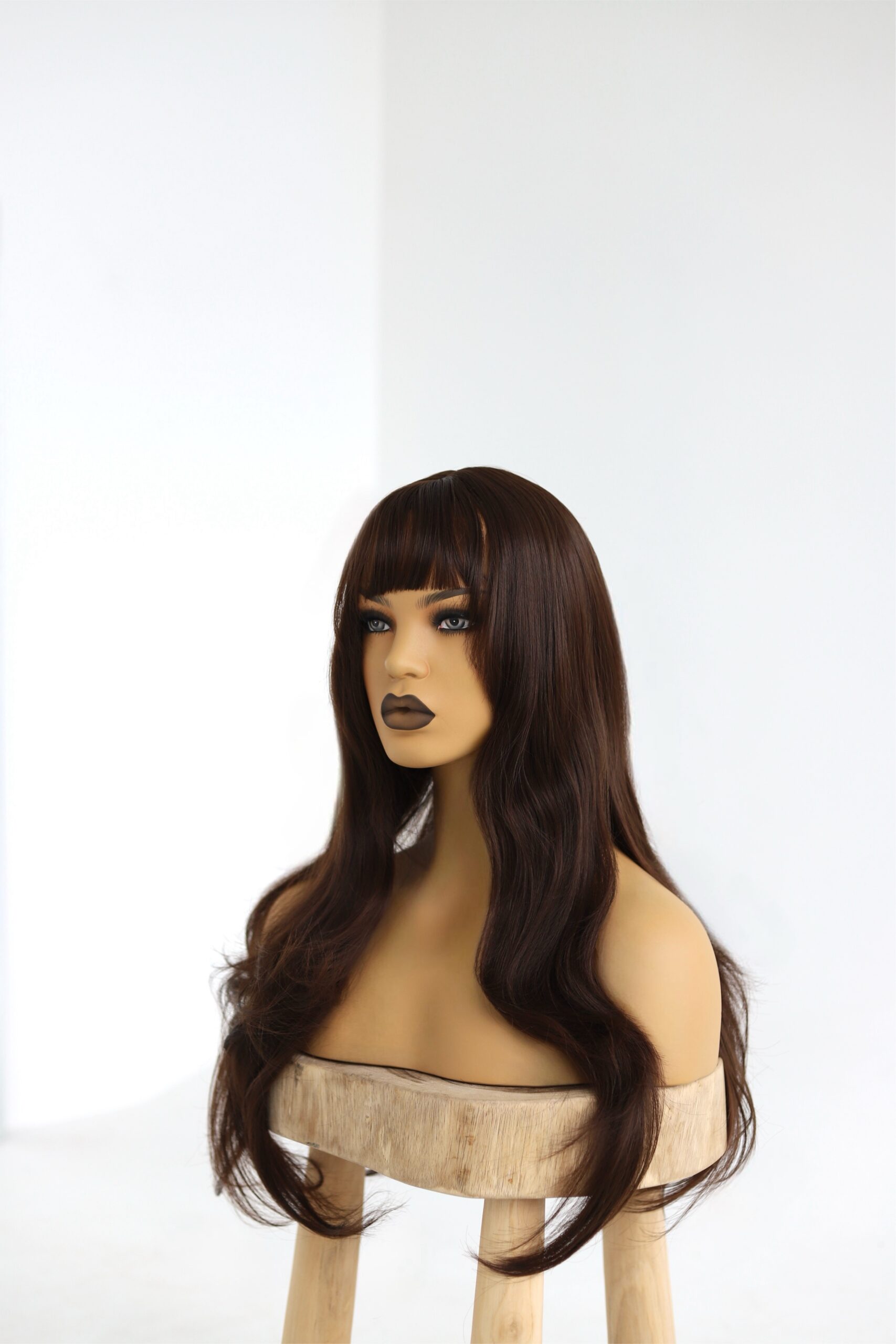 Długa Peruka Ciemno Brązowa z Grzywką – Naturalne Fale – Hanna