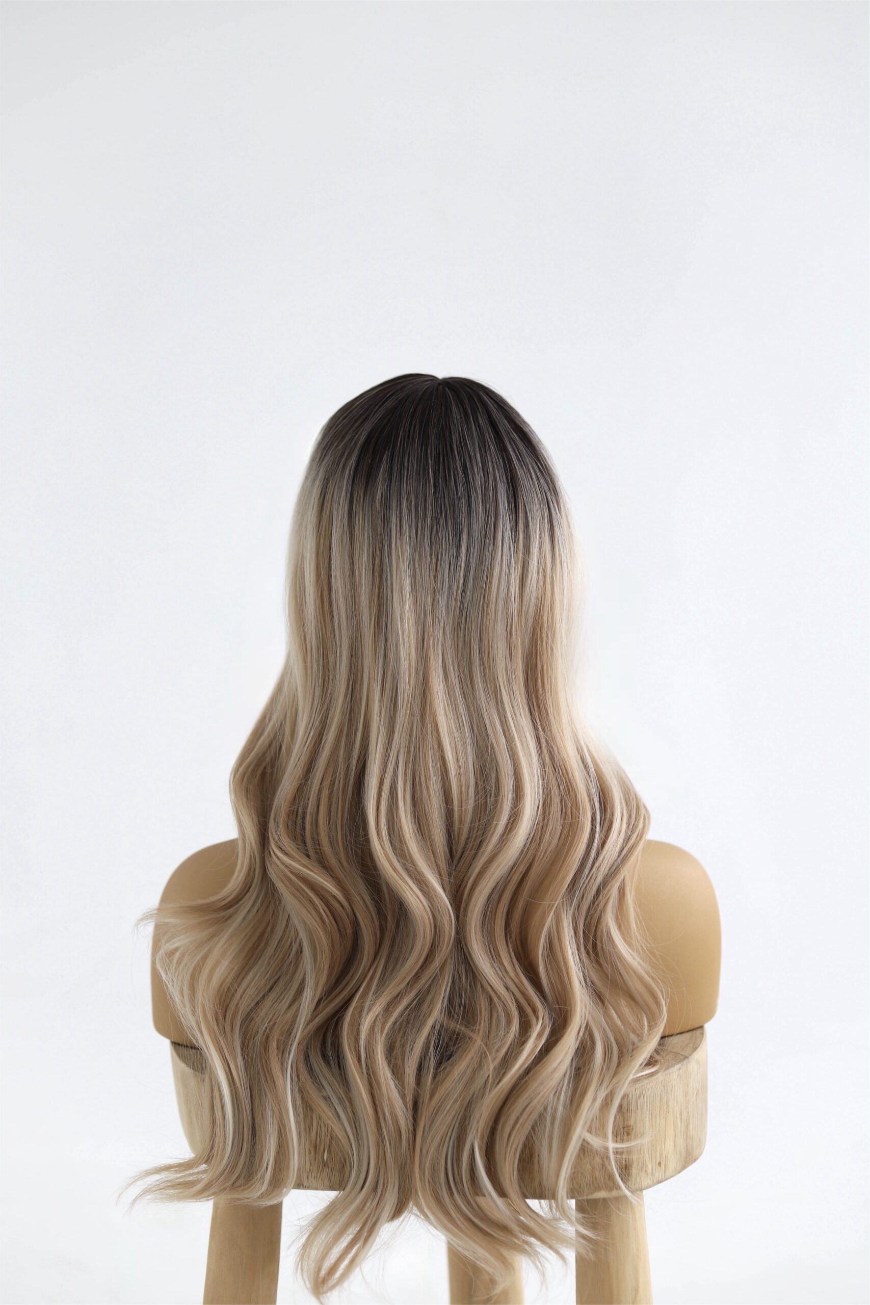 Stylowa długa peruka z naturalnie wyglądającą grzywką w modnym kolorze blond z ciemnym odrostem. Wykonana z wysokiej jakości włókna odpornego na temperaturę, miękka w dotyku i łatwa w stylizacji. Idealna na co dzień i na specjalne okazje – efekt nowoczesnej fryzury bez wizyty u fryzjera.