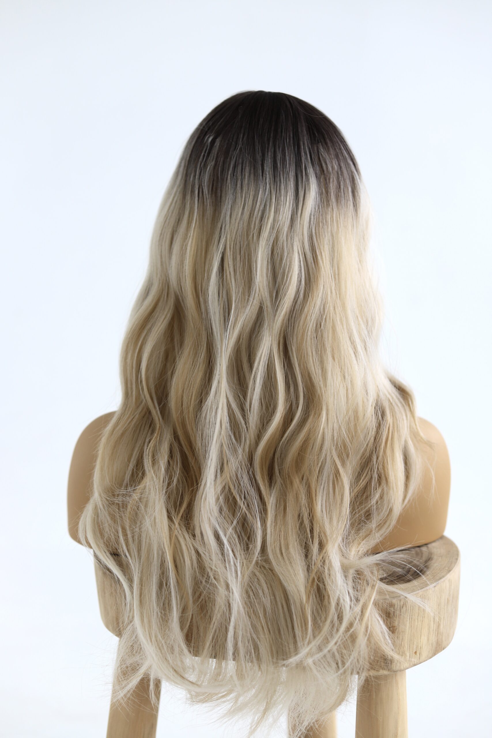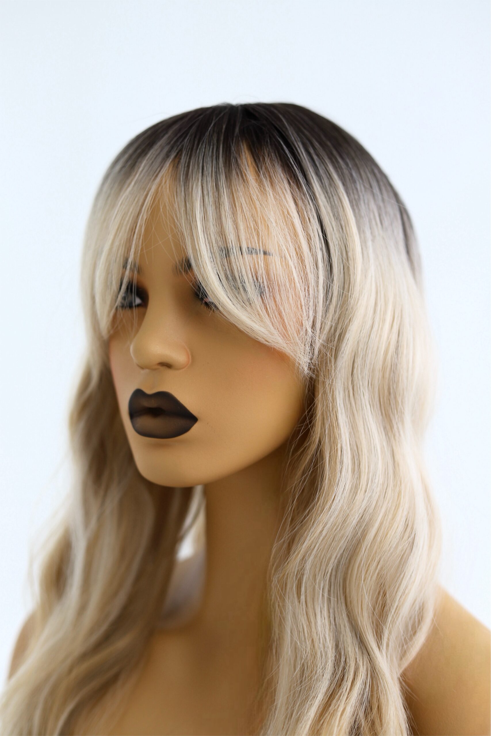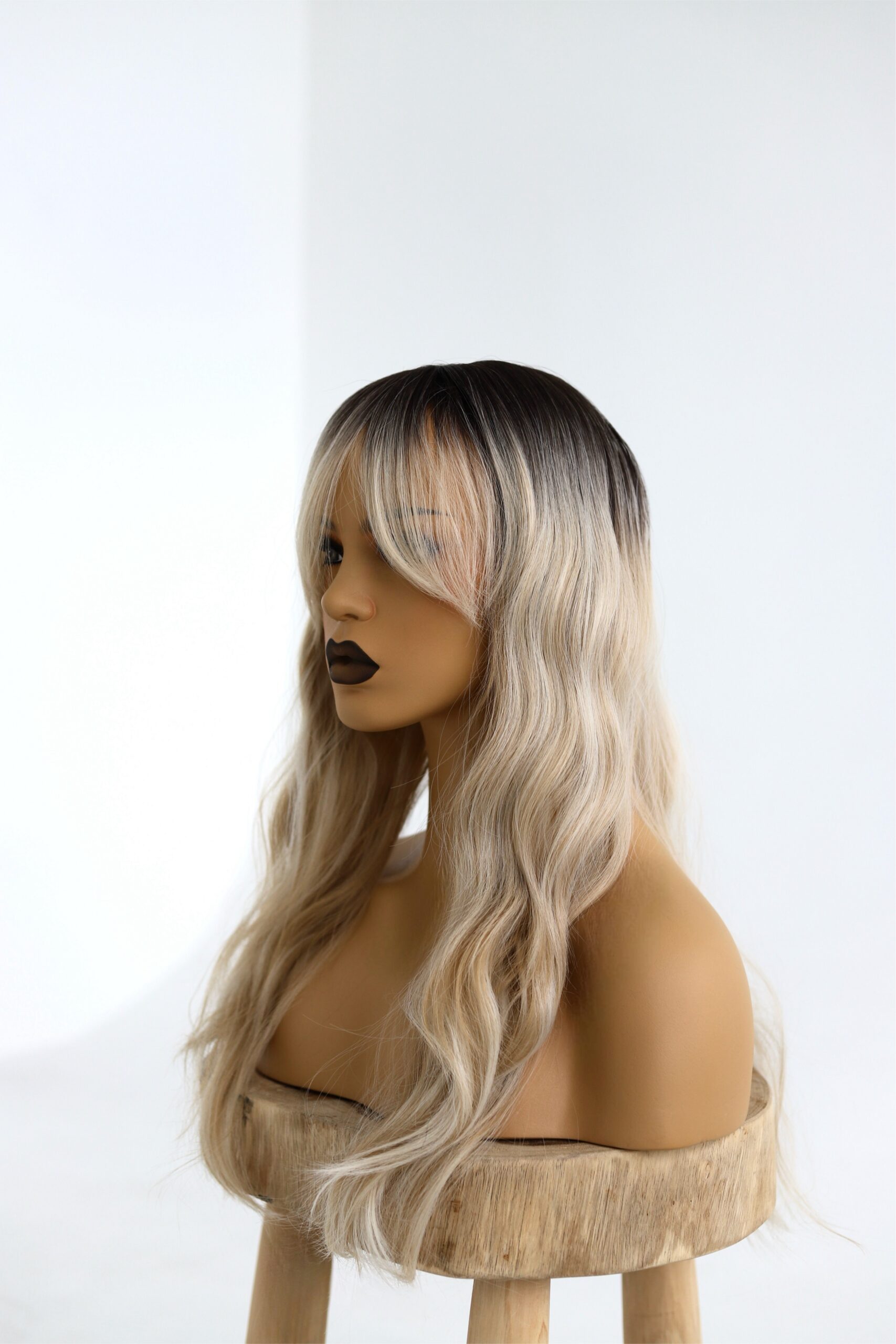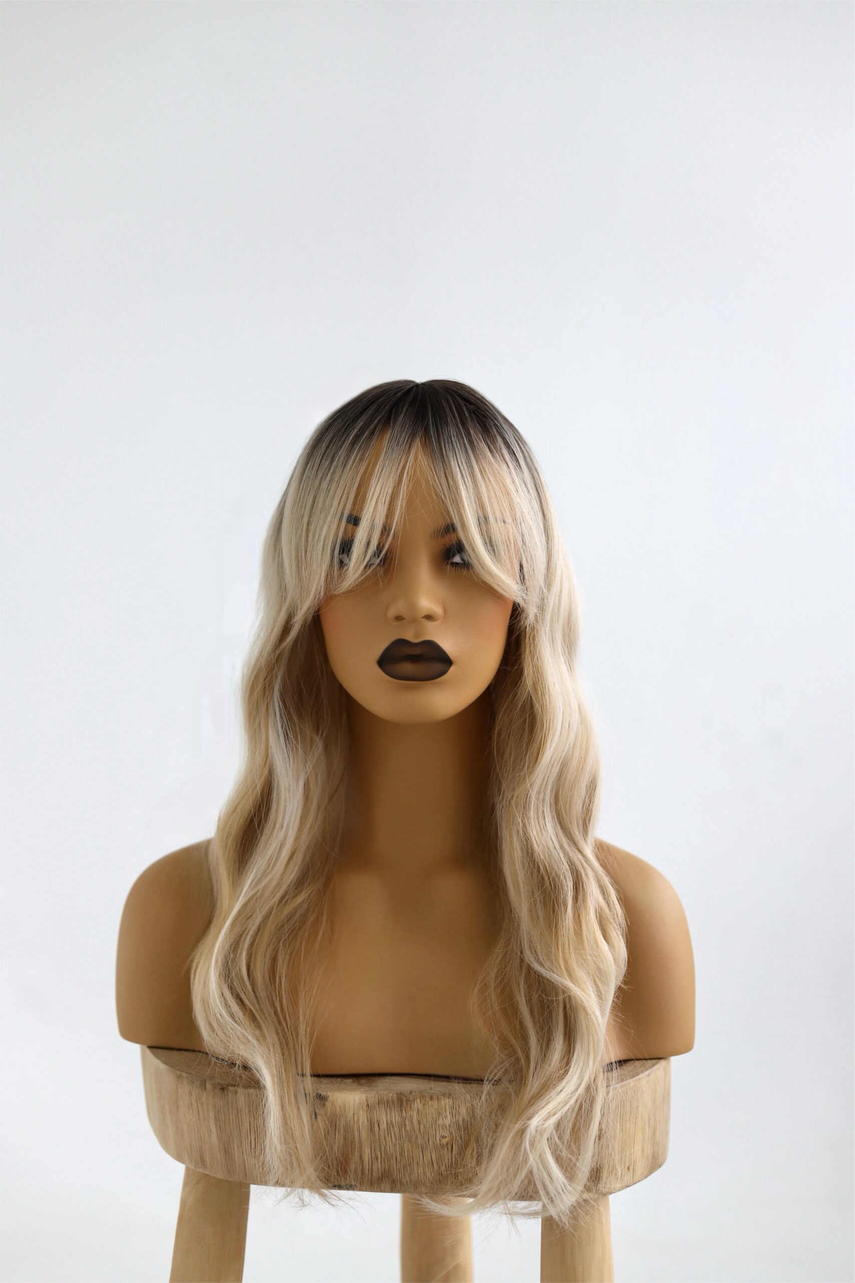 Długa Peruka w odcieniach Balejaż Blond z Grzywką zaczesaną na boki, duże fale – Amanda