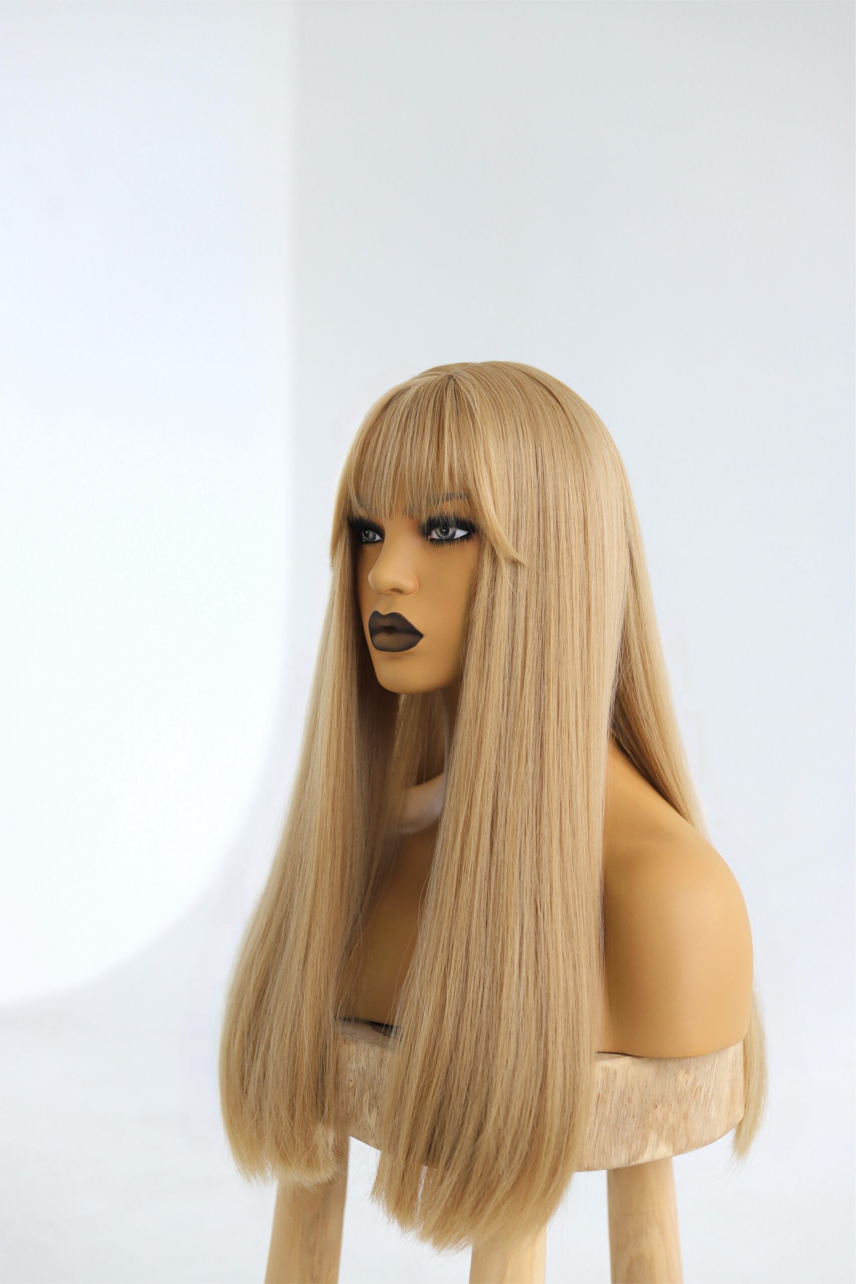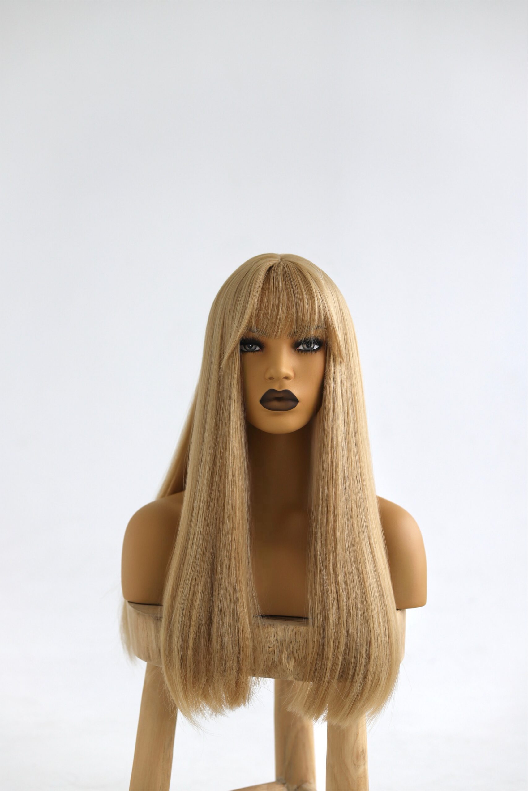 Długa Peruka Złoty Blond z Grzywką – Oliwia