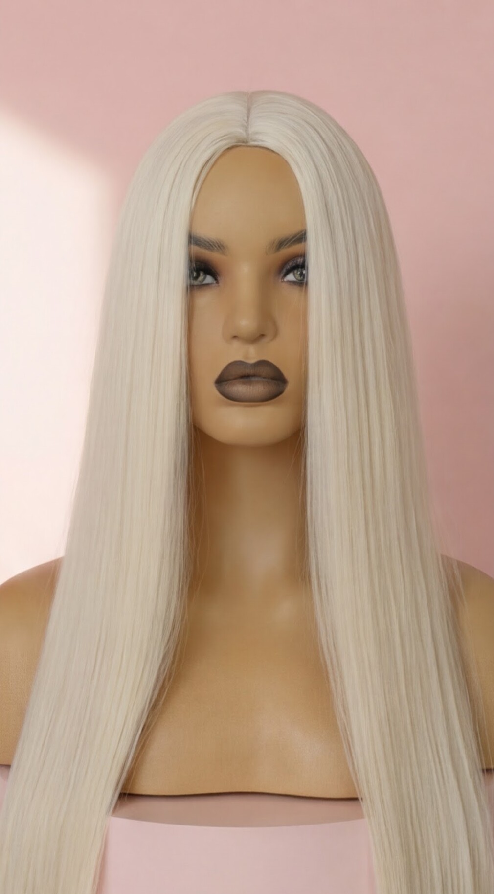 Ta długa prosta peruka platynowy blond zachwyca minimalistyczną formą i wyjątkowo eleganckim charakterem. Chłodny, jasny odcień platynowego blondu pięknie odbija światło i podkreśla rysy twarzy, tworząc efekt wyrafinowanej, nowoczesnej stylizacji. Perfekcyjnie prosta struktura włosa sprawia, że fryzura wygląda niezwykle schludnie i stylowo.