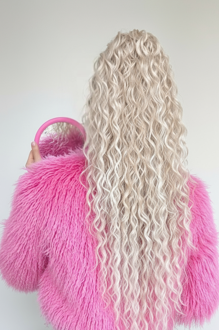Założenie doczepianego kucyka małe fale chłodny blond zajmuje dosłownie chwilę – wystarczy minutka, by zyskać efekt „wow” bez wizyty u fryzjera.