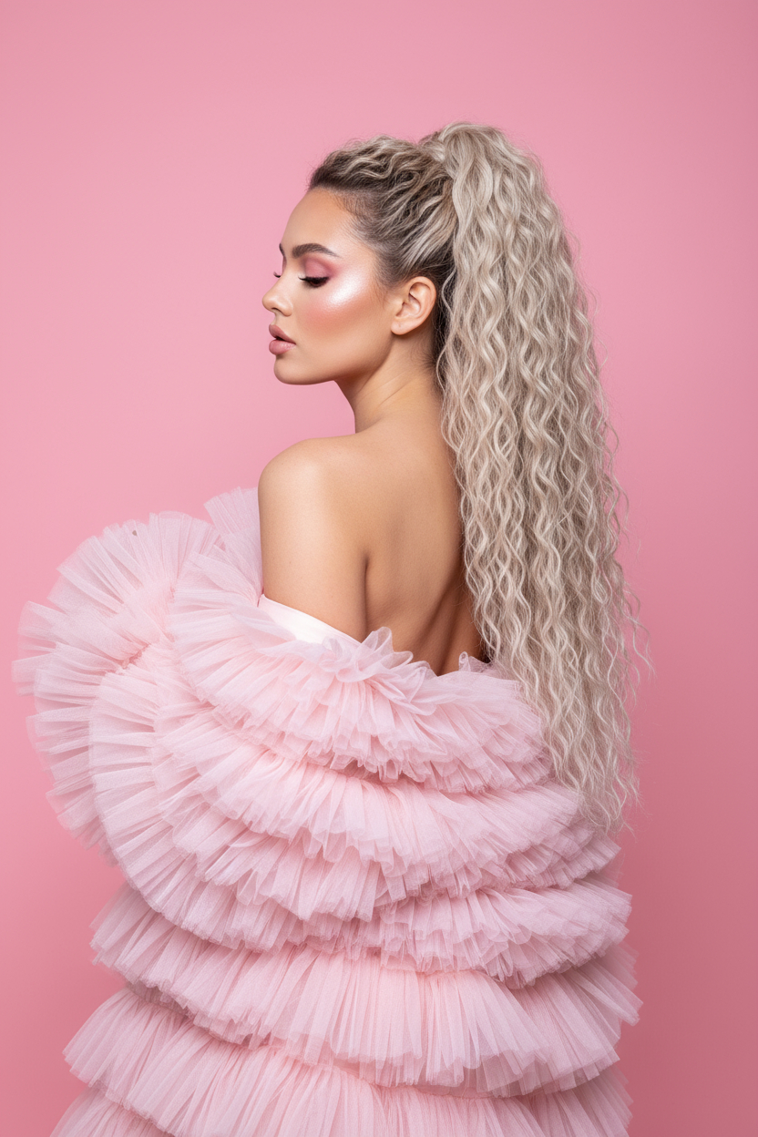 Wykonany z premium włókien syntetycznych, kucyk zachowuje sprężystość i kształt nawet po wielu użyciach. Montaż na ściągacz zapewnia stabilność przez cały dzień, dzięki czemu możesz cieszyć się perfekcyjną fryzurą na imprezie, weselu czy sesji zdjęciowej.