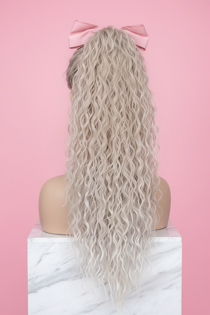Zachwyć wszystkich swoją fryzurą – wybierz doczepiany kucyk chłodny blond małe fale – ombre i ciesz się pięknymi, pełnymi objętości włosami w wyjątkowym odcieniu.