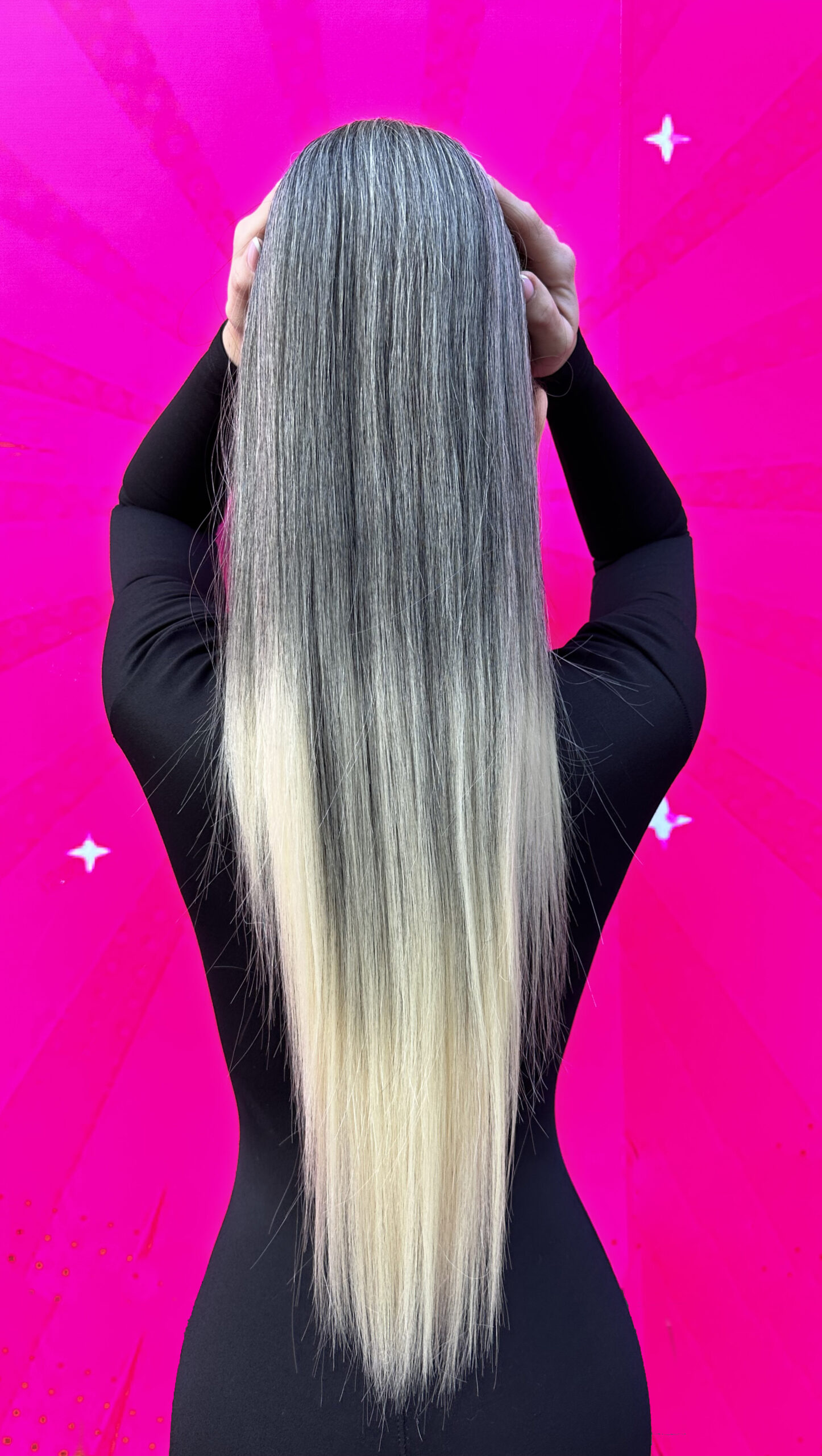 Przedstawiamy Ci Doczepiany Kucyk – Kitkę Prostą czarna nasada i ombre – bardzo jasnym blond 70cm