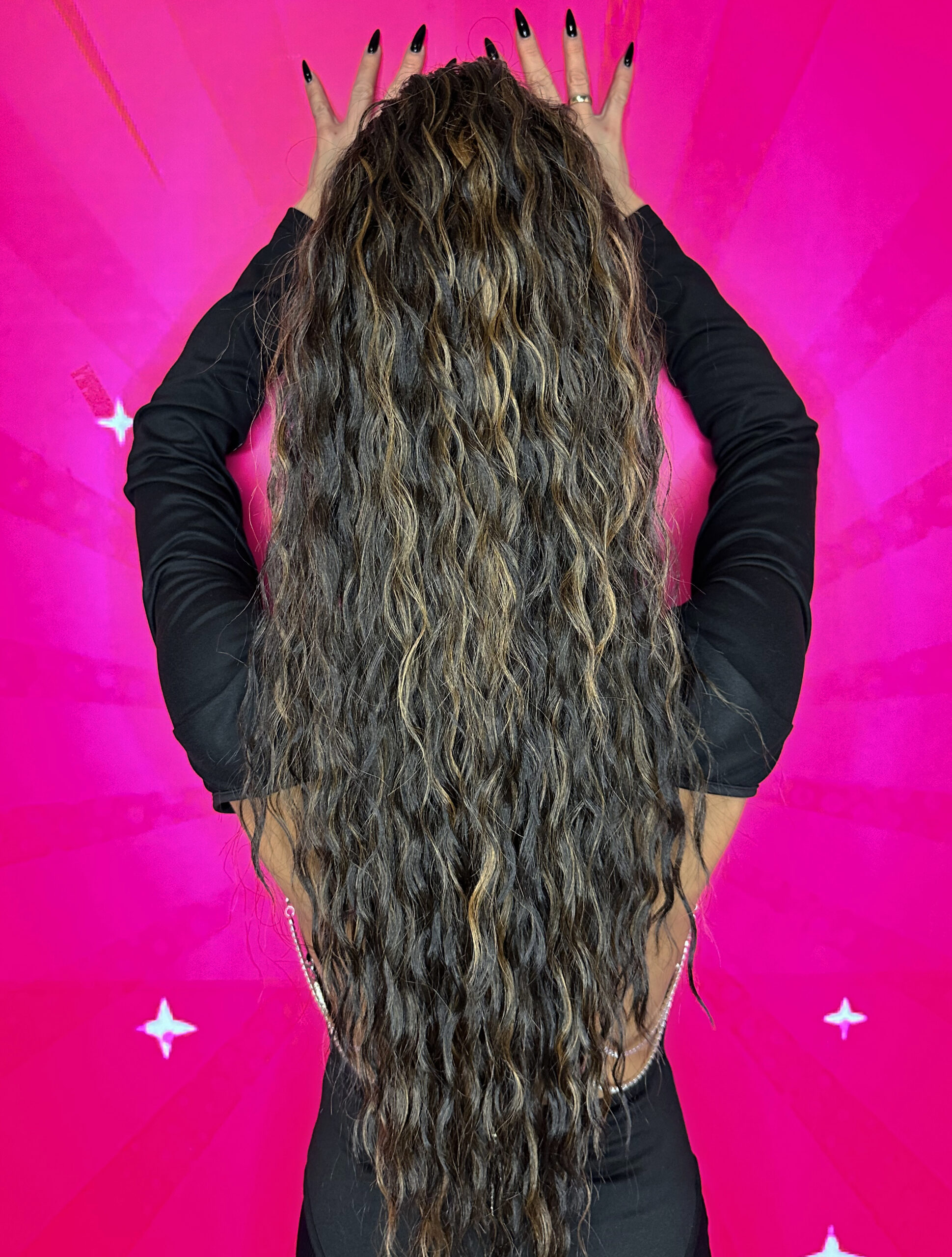 Doczepiany Kucyk – Kitka Brazylijskie Fale Bardzo Ciemny Brąz z Balejażem 70cm