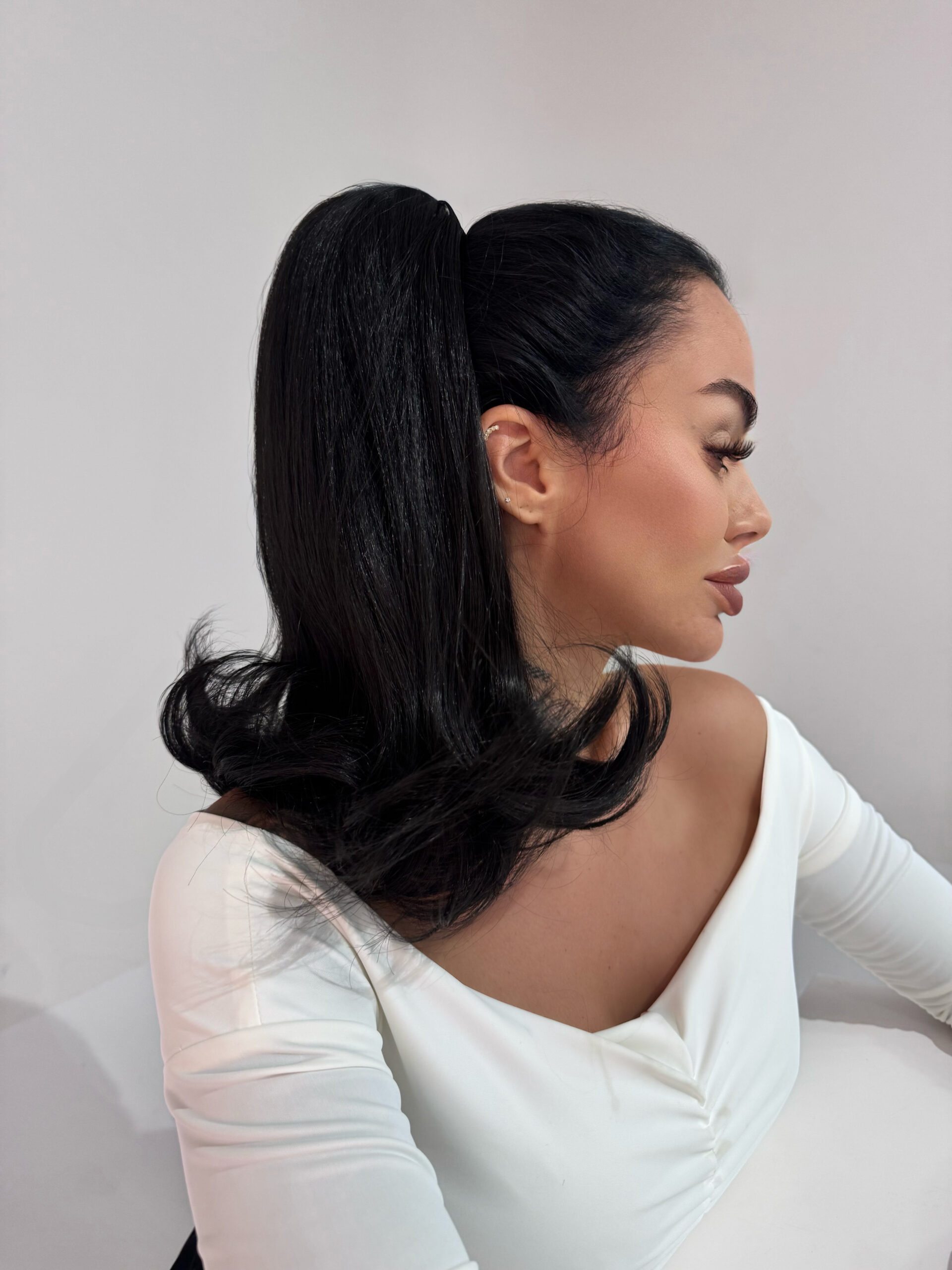 Przedstawiamy Ci Doczepiany Kucyk – Kitkę czarną o długości 35cm i wywiniętymi końcami