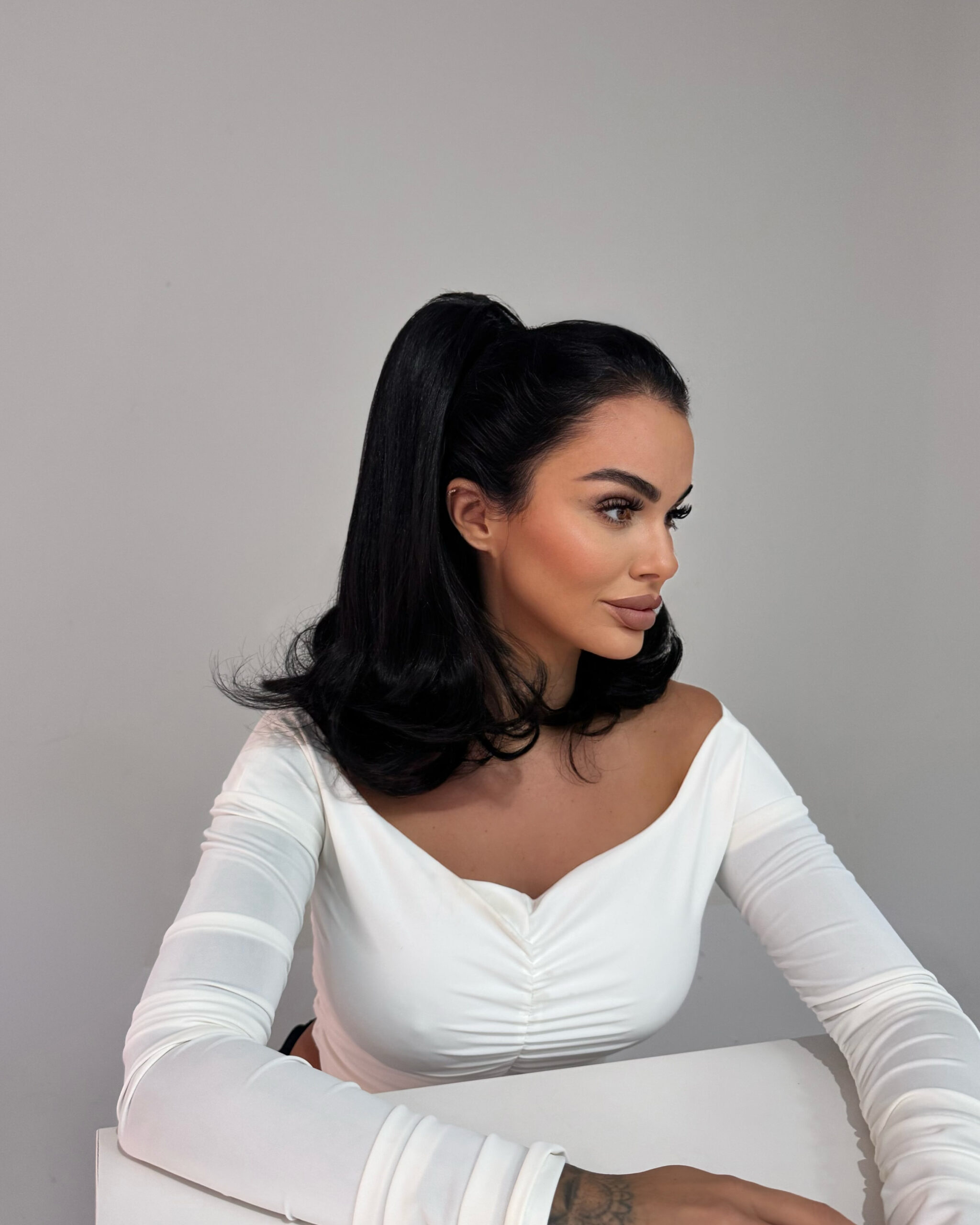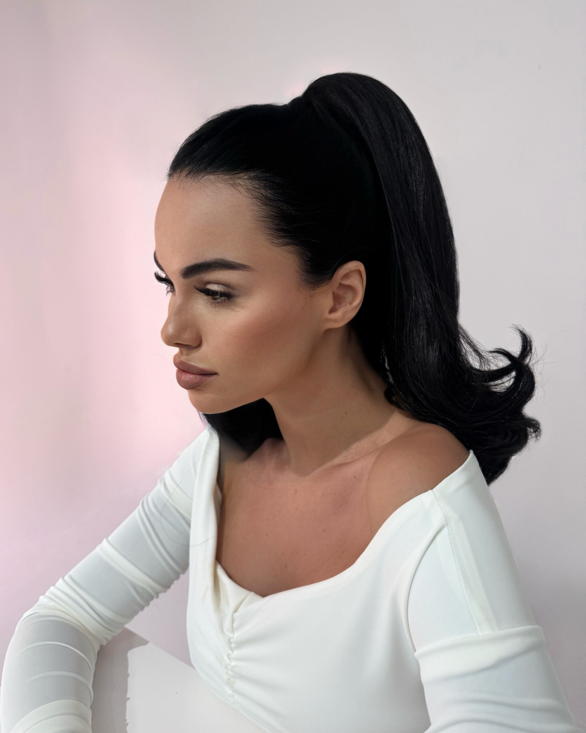 Wzbogać swoją stylizację o doczepiany kucyk z charakterystycznie wywiniętymi końcówkami, inspirowany fryzurami noszonymi przez gwiazdy, takie jak Kim Kardashian i Ariana Grande. To idealny wybór dla osób, które pragną dodać swojej fryzurze odrobinę glamour i elegancji.