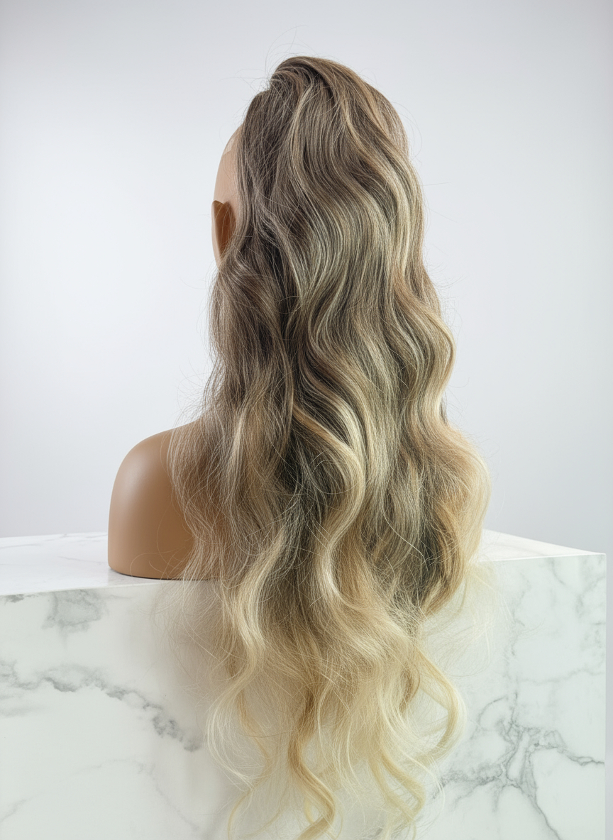 Doczepiany Kucyk – Kitka Luźne Fale Ciemny Blond Ombre 70cm