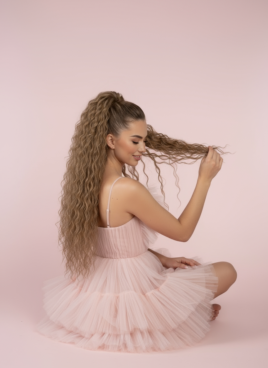 Doczepiany Kucyk Małe Fale Toffi to szybki sposób na efektowną metamorfozę! Dodaj objętości i blasku swojej fryzurze w kilka sekund. Naturalny wygląd, drobne fale i naturalny odcień ciemnego blondu sprawią, że zachwycisz przy każdej okazji.