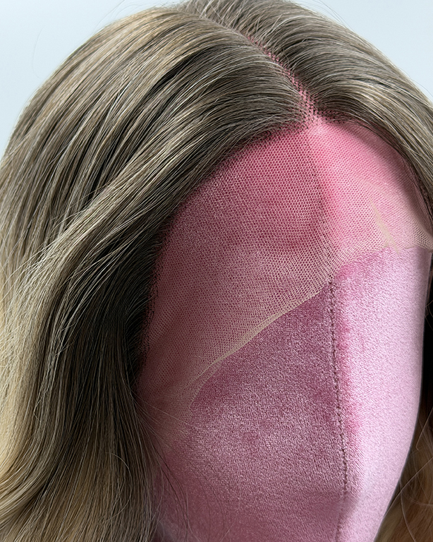 Zastosowana siatka HD lace front idealnie stapia się ze skórą głowy. Ręcznie tkany przedziałek oraz możliwość jego zmiany pozwalają na pełną swobodę stylizacji. Ciemniejszy odrost dodatkowo maskuje linię włosów i wzmacnia efekt naturalności.