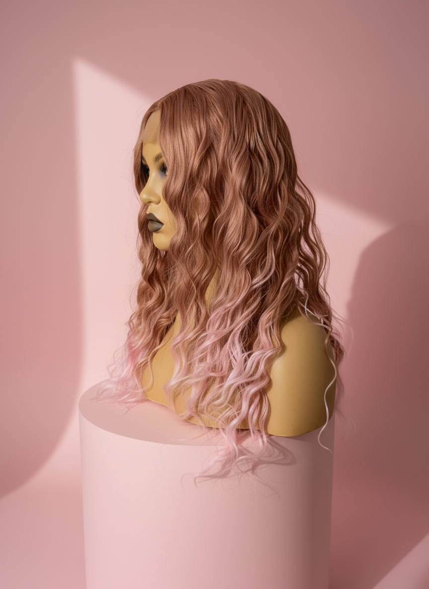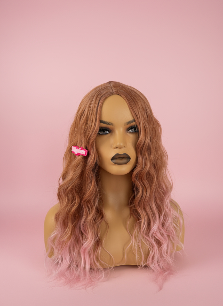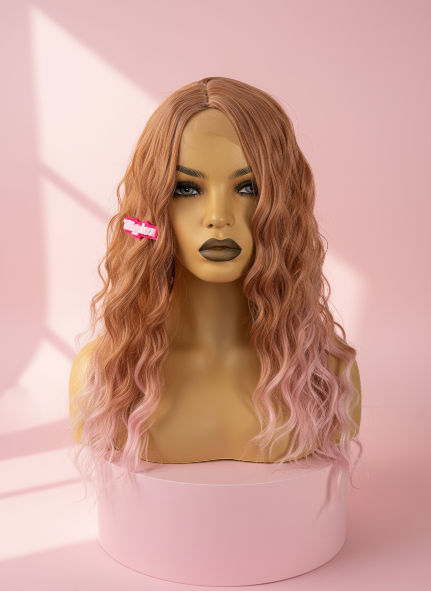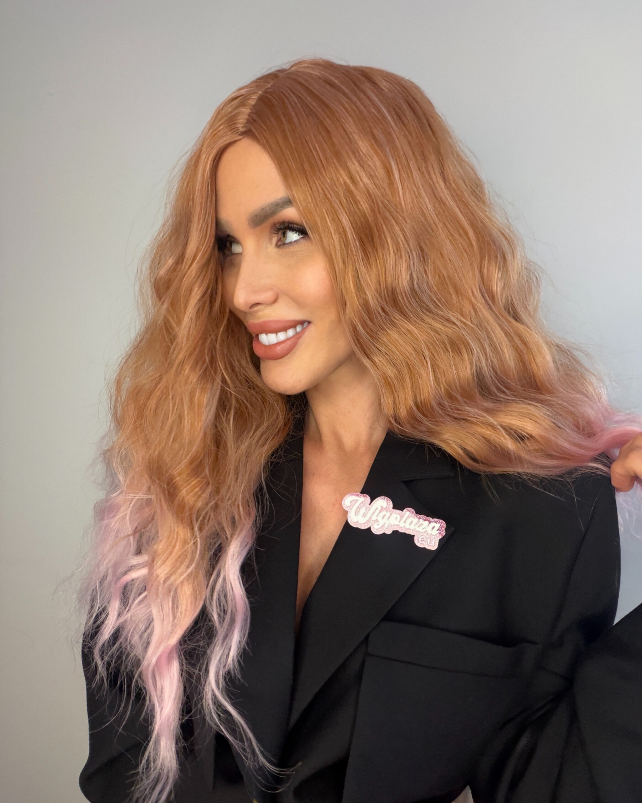 falowana różowa peruka w odcieniu brzoskwiniowy róż + baby pink