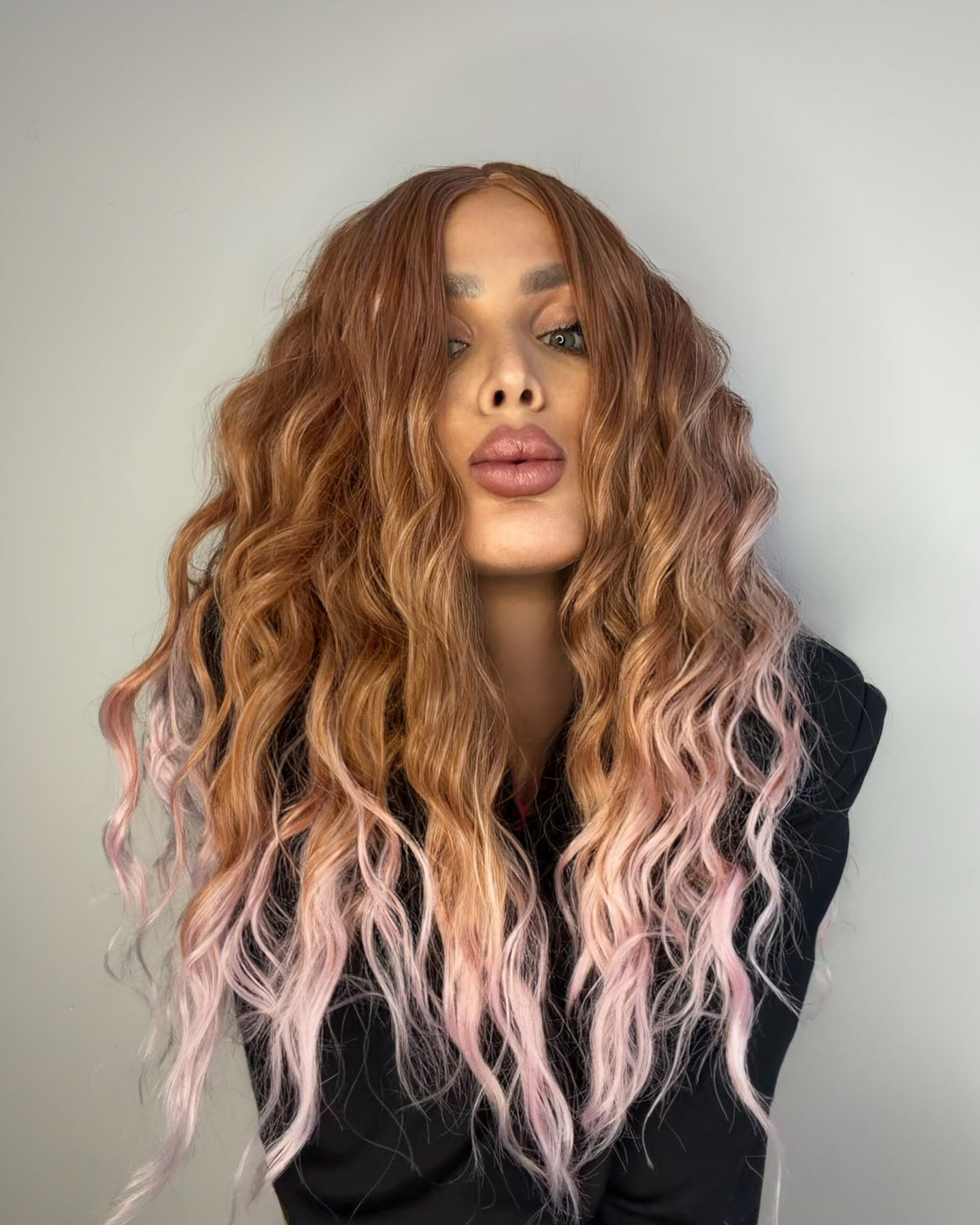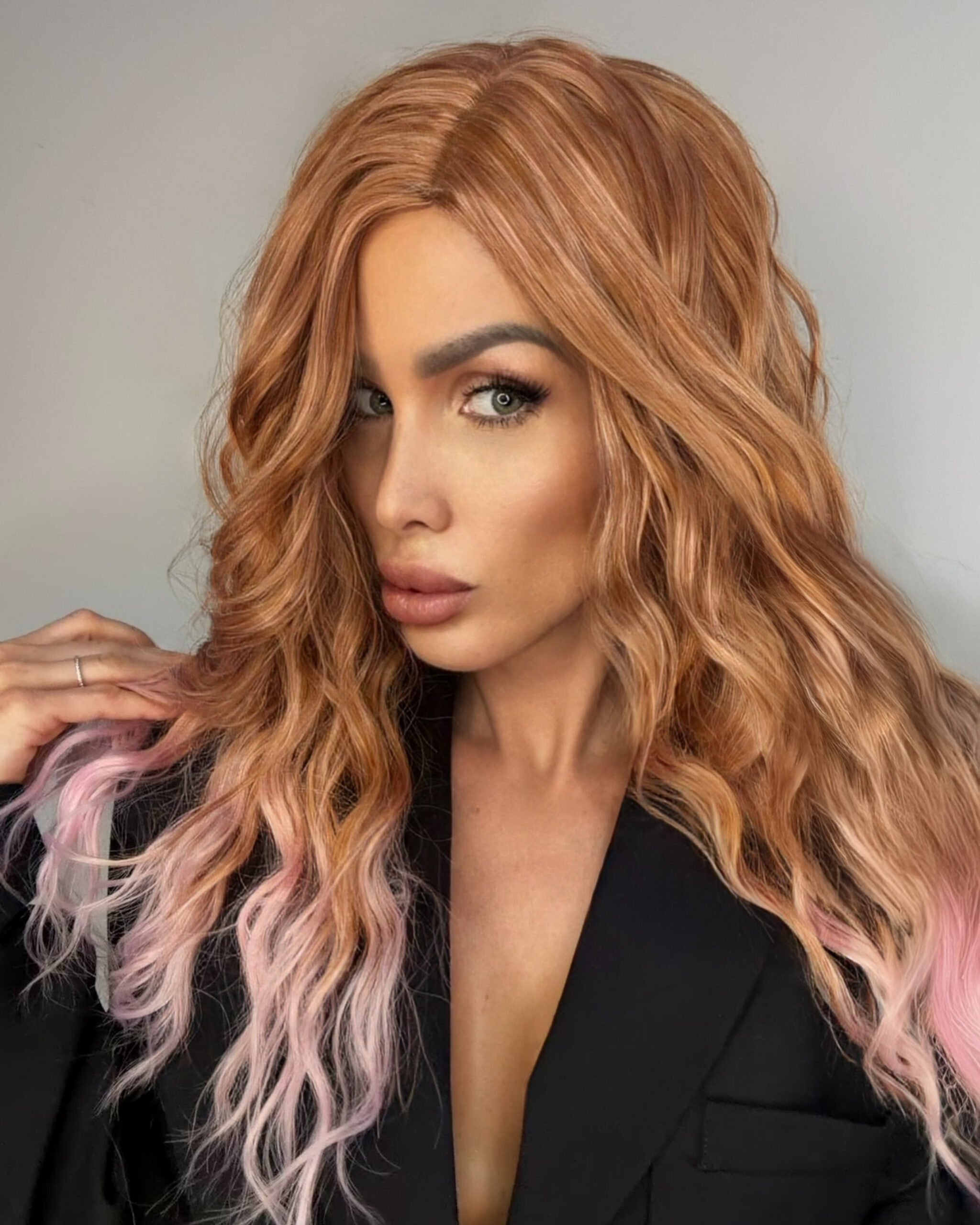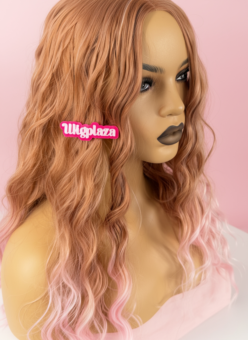 falowana różowa peruka w odcieniu brzoskwiniowy róż + baby pink