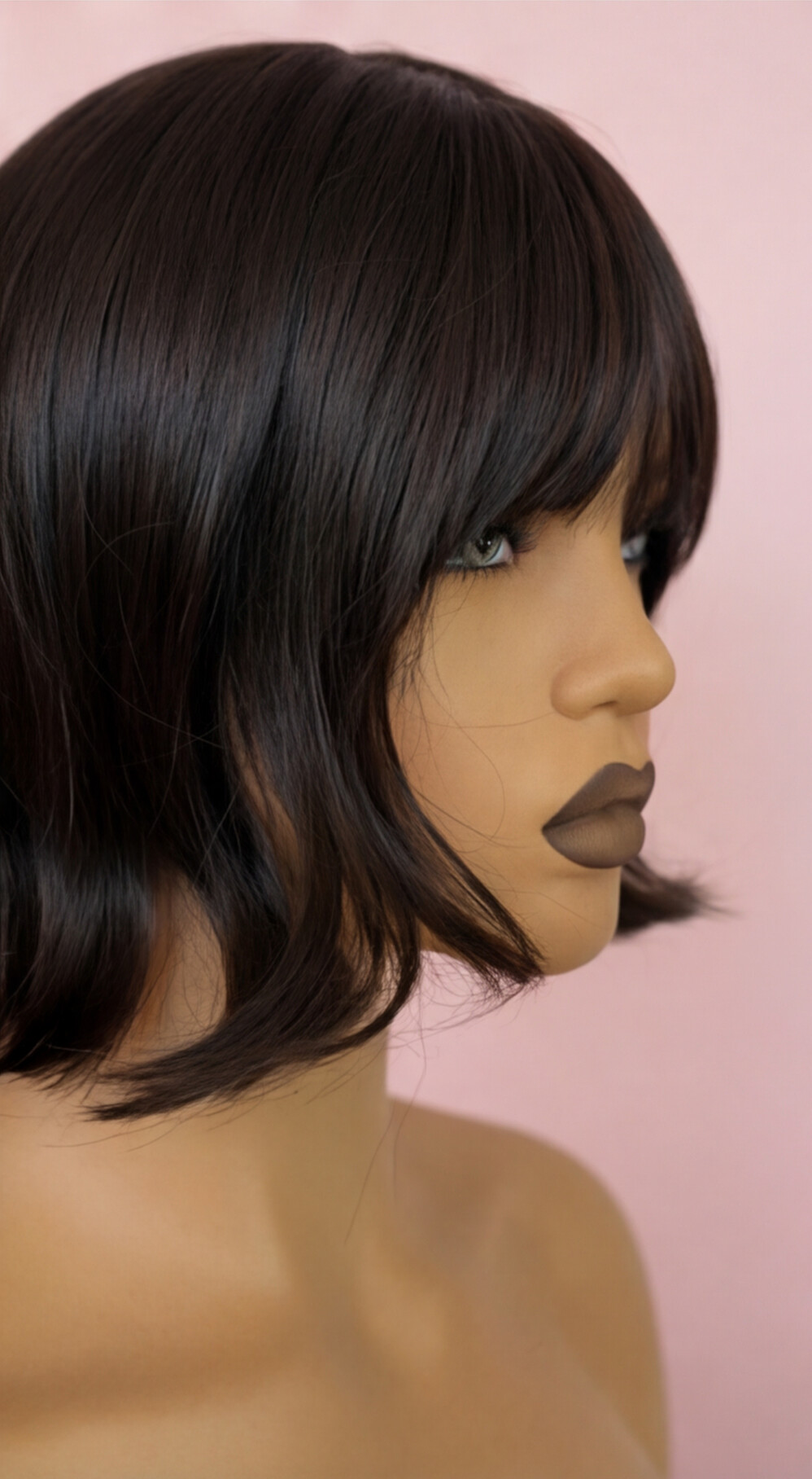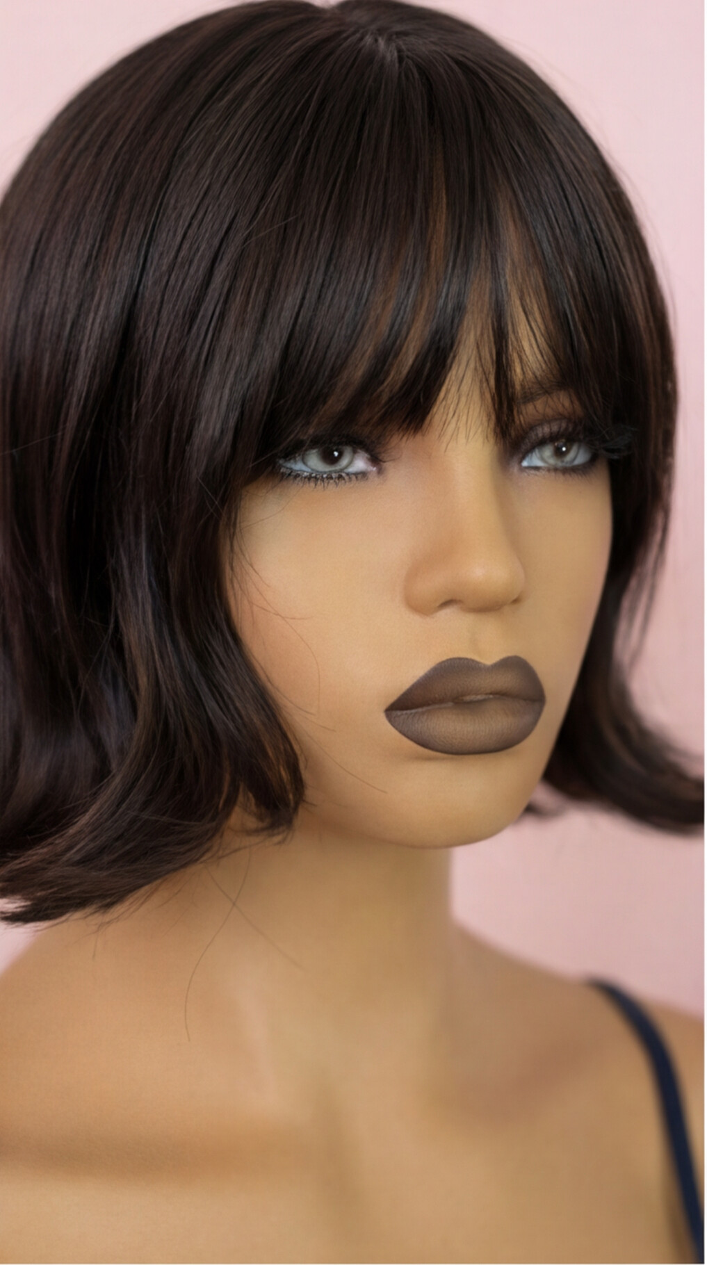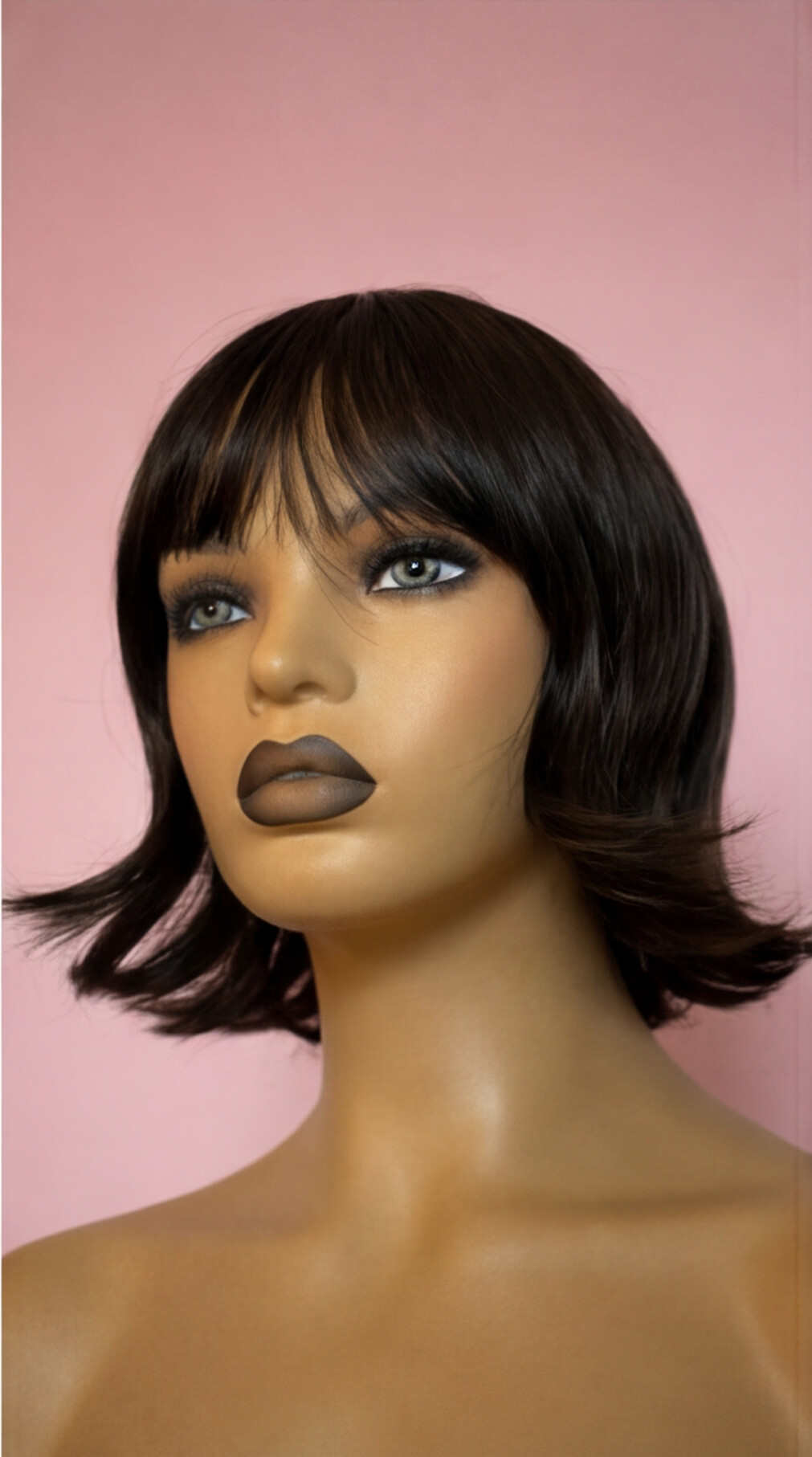 Ta krótka peruka bob z grzywką nawiązuje do klasycznych fryzur z lat 60 i 70, które regularnie wracają do trendów. Charakterystyczny krótki bob z wywiniętymi końcami tworzy elegancki, uporządkowany kształt, kojarzony ze stylem vintage, Hollywood oraz francuskim chic. Dzięki nowoczesnemu wykończeniu soft-glam fryzura wygląda lekko, kobieco i bardzo stylowo.