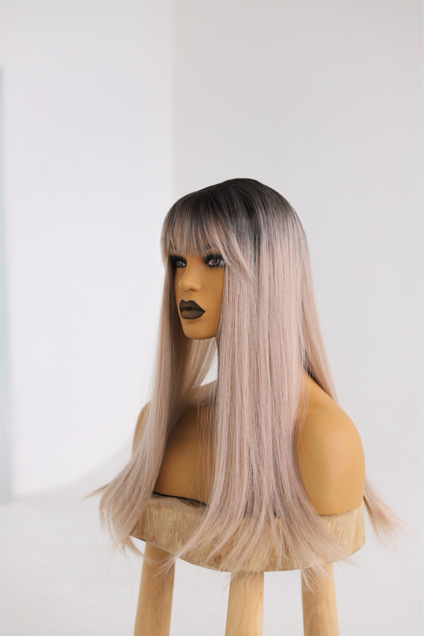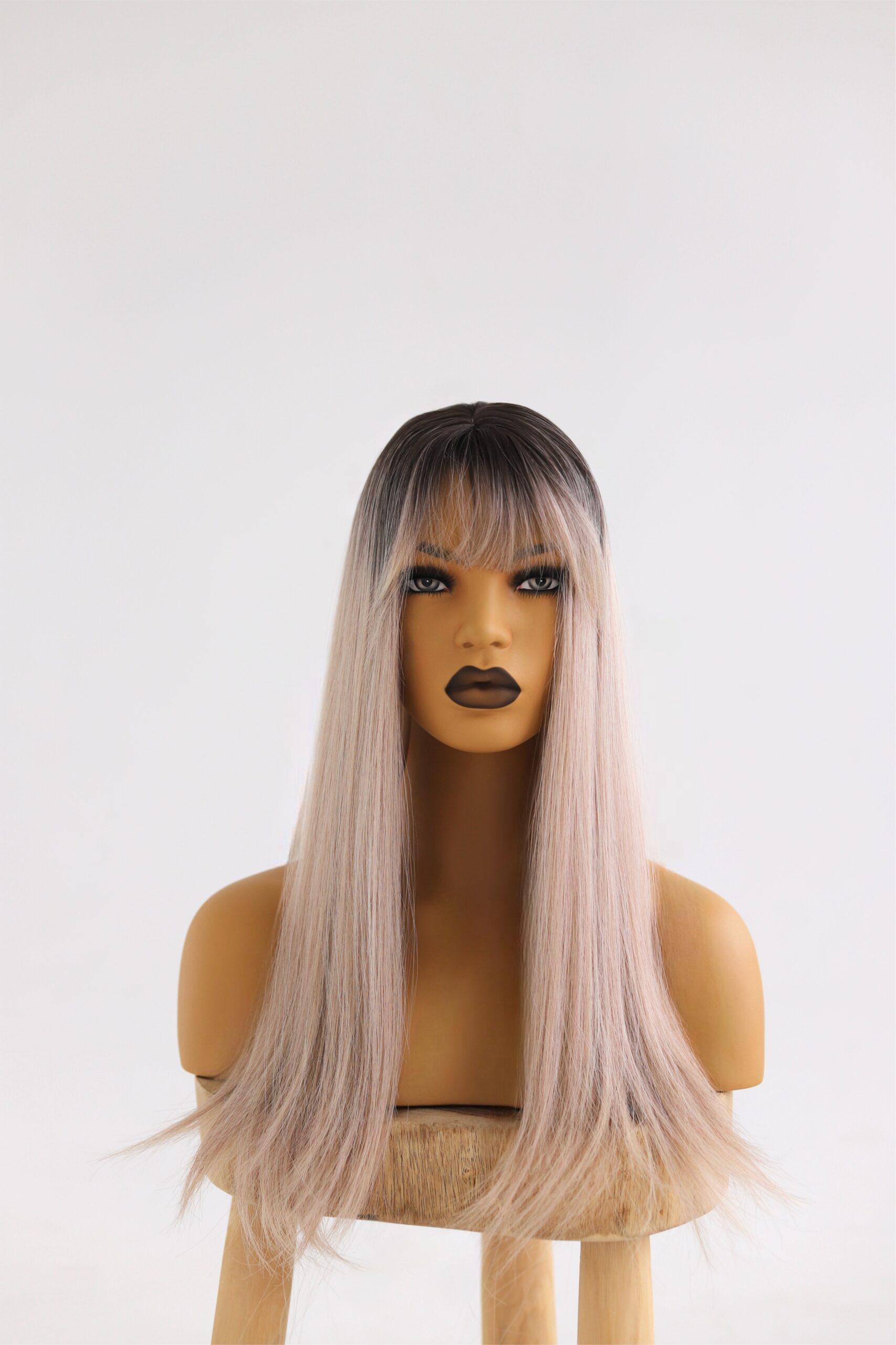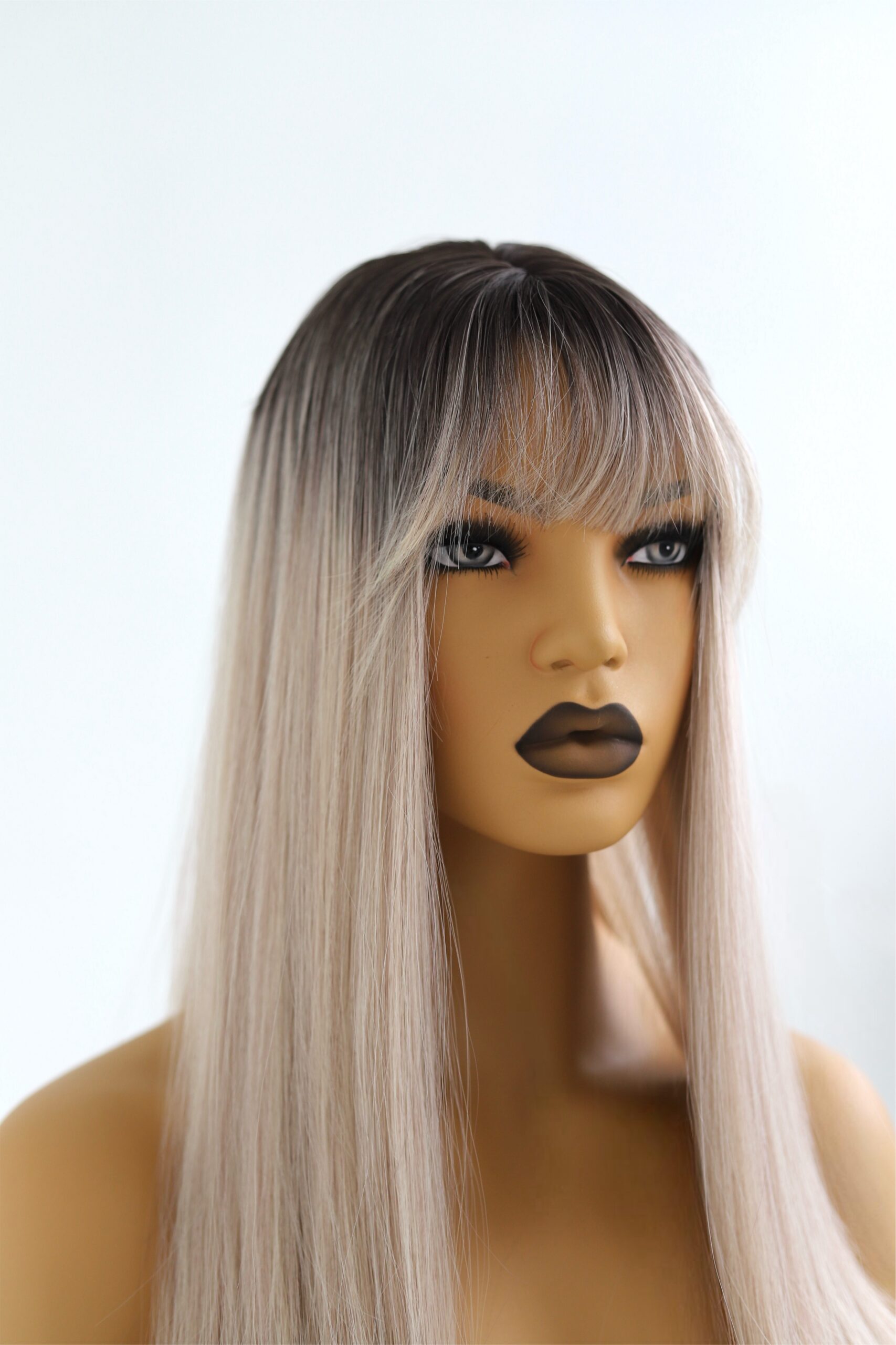 Peruka Beżowy Blond z Grzywką i Ciemnym Odrostem – Alicja