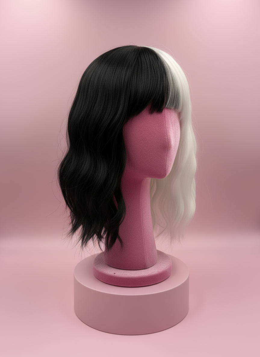 Jeśli chcesz wyróżnić się na imprezie, balu przebierańców czy cosplayu, ta peruka czarno-biała będzie idealnym wyborem – wyrazista, oryginalna i pełna charakteru.