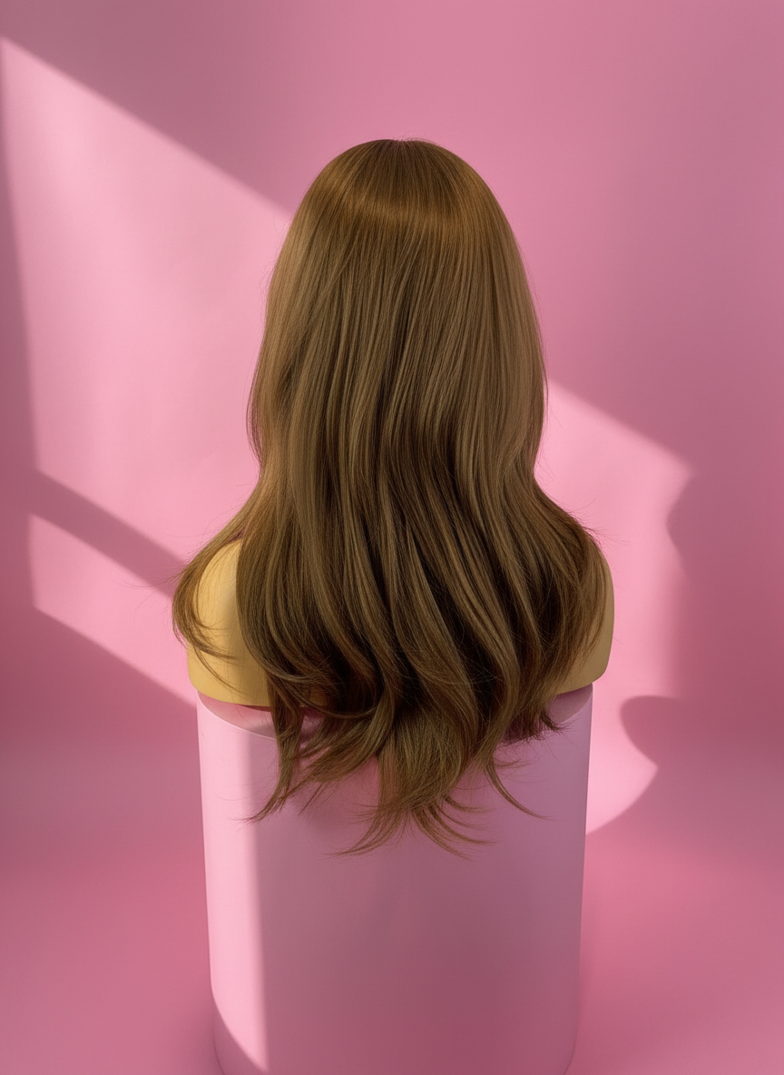 Pełna możliwość układania fryzur - Dzięki dużej powierzchni lace oraz włóknu premium masz pełną swobodę stylizacji: 1. przedziałek po lewej, prawej lub na środku, 2. gładka stylizacja „prosto w dół”, 3. upięcia typu half-up, spinki, opaski, 4. delikatne modelowanie na końcach, Peruka zachowuje naturalny ruch i objętość, bez efektu sztuczności.