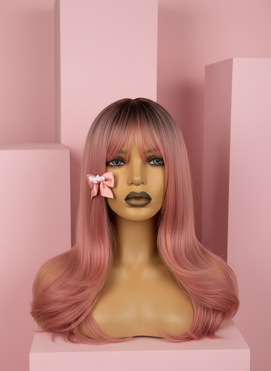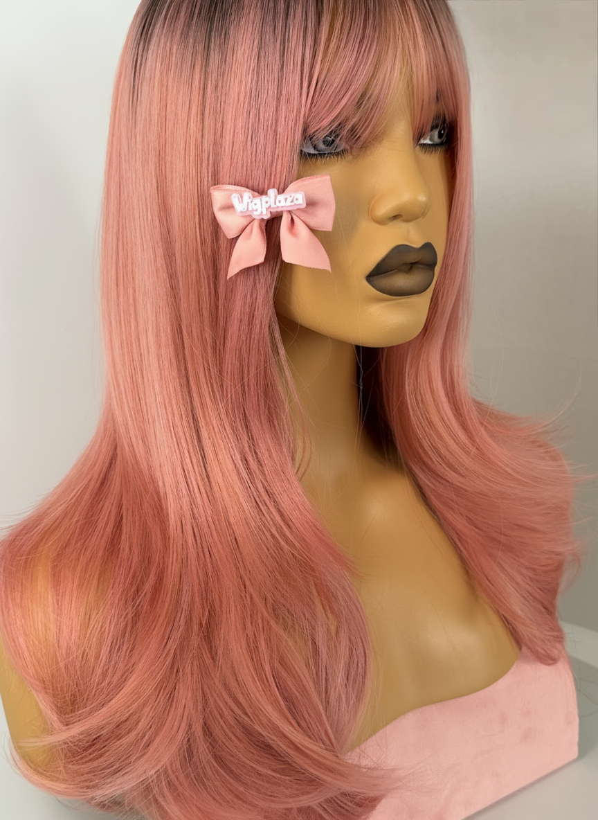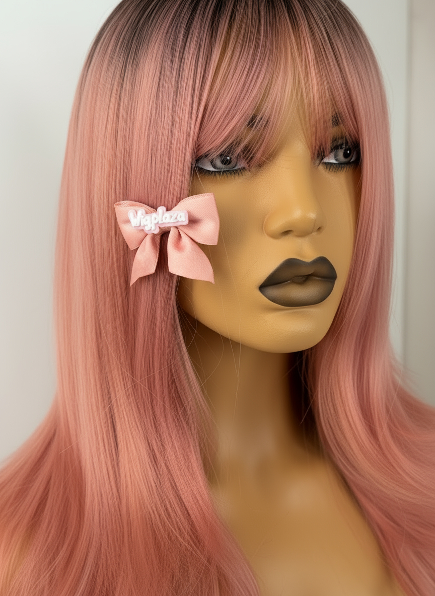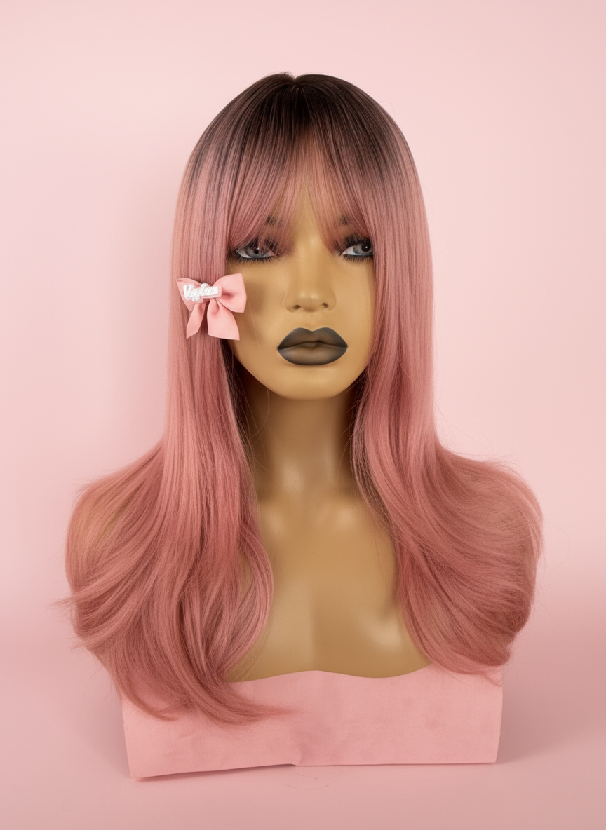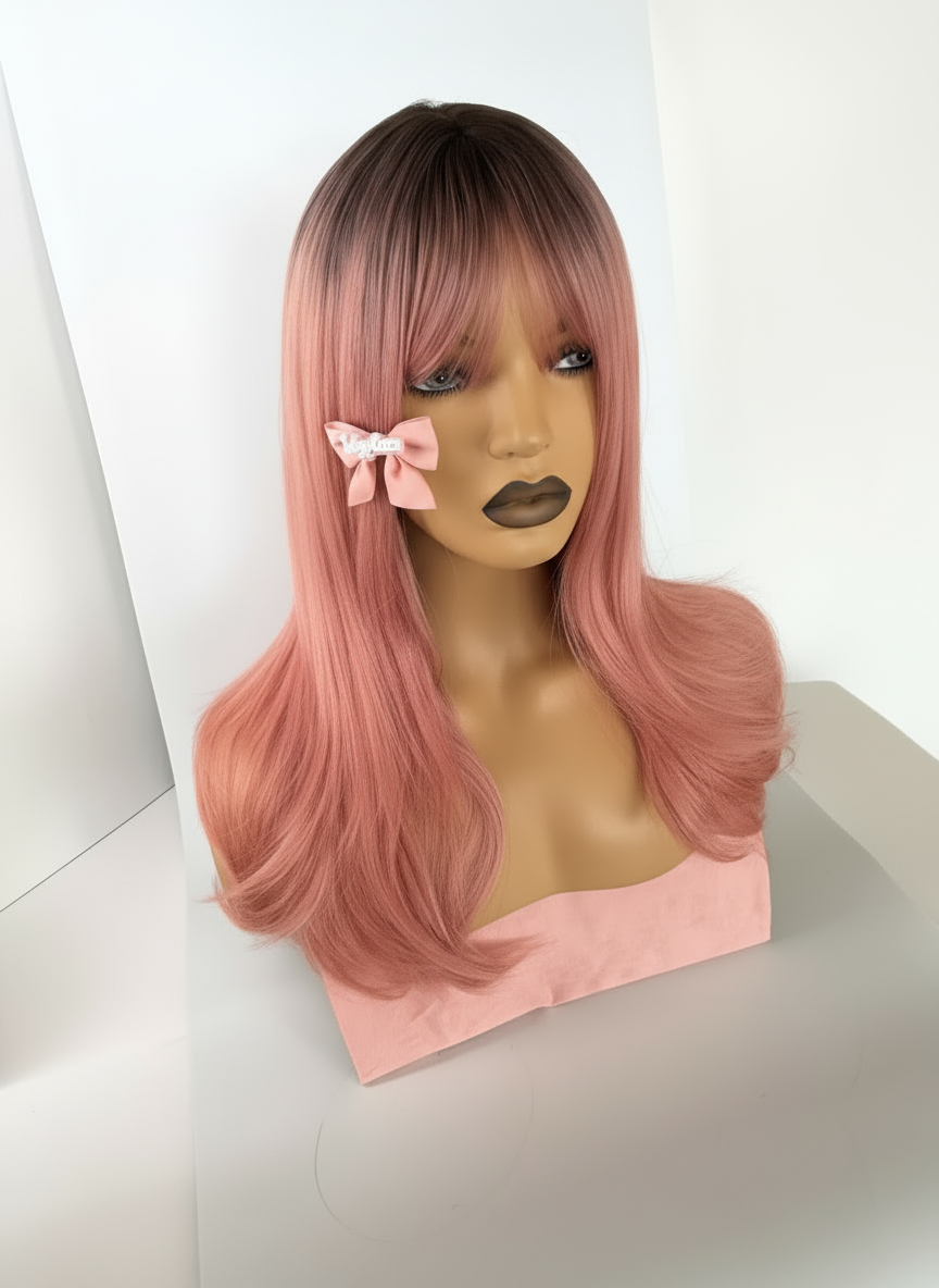 Peruka pudrowy róż z grzywką zachwyca miękkim, pastelowym odcieniem i lekkim, naturalnym cięciem, które pięknie układa się przy twarzy. Gładkie włosy subtelnie nabierają objętości ku końcówkom, a efekt mikroskóry na przedziałku sprawia, że model wygląda wyjątkowo realistycznie. Idealna do codziennych stylówek i kreatywnych, dziewczęcych looków.