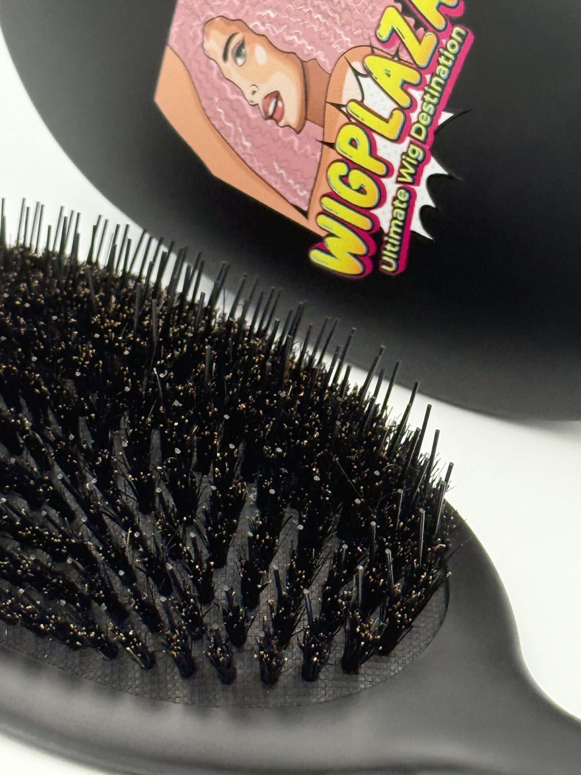 Profesjonalna szczotka do włosów, która łączy naturalne włosie dzika z przezroczystymi igiełkami z nylonu. Dzięki tej unikalnej kombinacji zapewnia intensywną pielęgnację, skuteczny detangling i delikatny masaż skóry głowy. Włosie dzika równomiernie rozprowadza naturalne sebum, nadając włosom blask i elastyczność. Nylonowe igiełki pobudzają mikrokrążenie, wspierając zdrowy porost włosów.